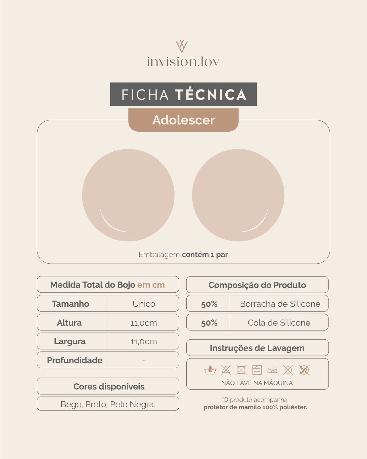 Adesivo de silicone côncavo com cola medicinal. Discreto, confortável para uso prolongado e não marca a roupa. Além de ser impermeável, é prático e fácil de usar. Corrige o formato dos seios apresentando uma silhueta natural. Ideal para acompanhar o crescimento dos seios, por ser leve e discreto. Ajuda a evitar o atrito da roupa com a pele , evita o efeito do “farol aceso” e reduz possível desconforto e constrangimento, além de manter a pele hidratada.
